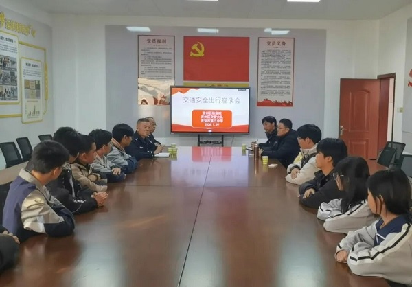 法治课上,检察官紧密结合在校学生的出行特点以及日常出行习惯,以案说法,引导师生自觉遵守交通法规,践行文明交通新风尚。座谈交流中,针对改装车辆、贴牌套牌、超载超速等违法行为,普及法律条例,明确处罚标准,叮嘱学生们要将“一盔一带,安全常在”铭记于心。